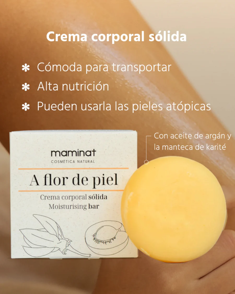 La crema corporal sólida ‘A Flor de piel’ hidratará tu piel en profundidad sin generar residuos al medio ambiente. Su formato, la hace ideal para llevarla de viaje o al gimnasio.